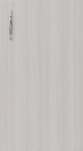 Materiál LTD, korpus je v šedé barvě, dvířka jsou v barvě ash surfside/chinchilla grey, úchyty jsou v barvě černé.