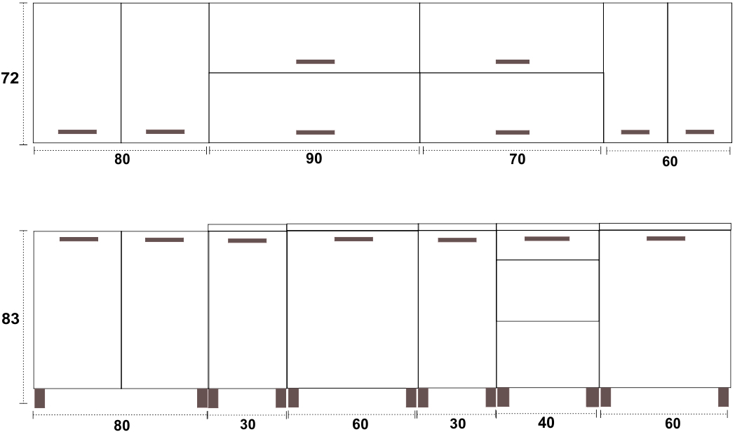 skříňka s výklopnými dvířky š.90 cm, v.72 cm, hl.30 cm