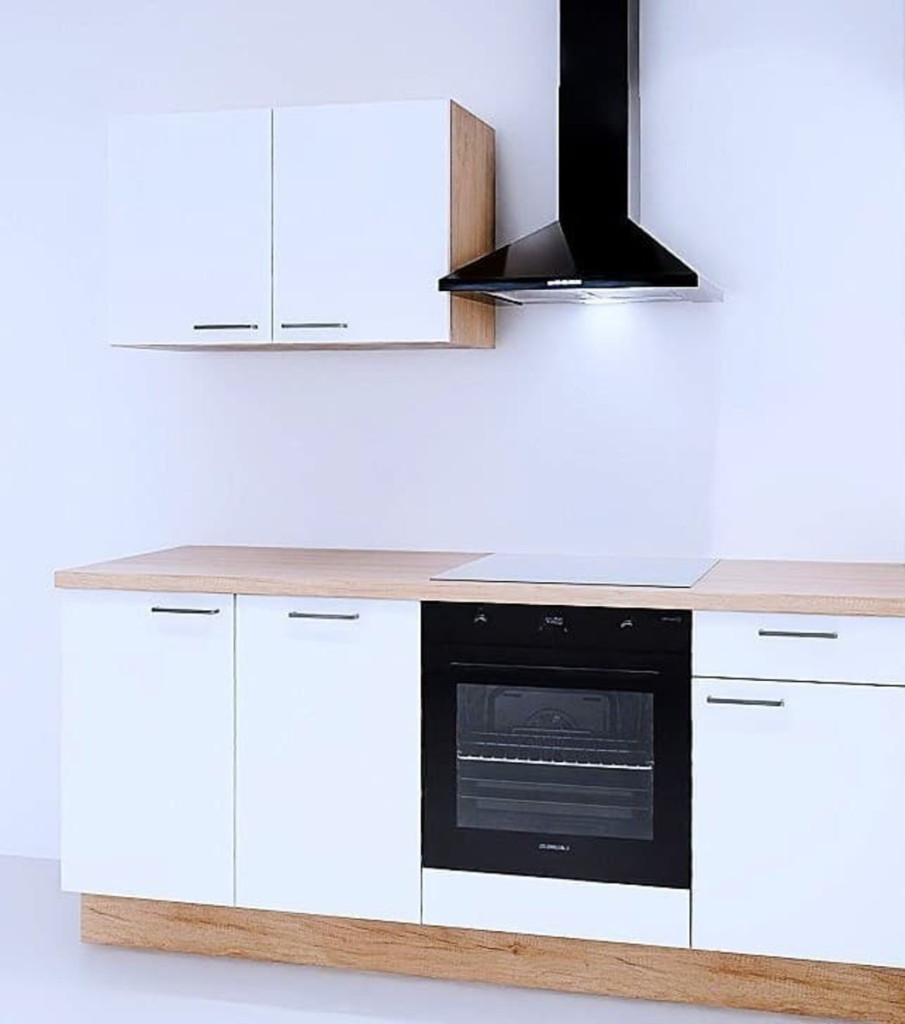 Vyrobeno v Německu, vysoce kvalitní, odolné proti poškrábání a oděru, čela a korpus oboustranně melaminové, obzvláště vysoká odolnost viditelných hran, obzvláště stabilní kvalitní kování , praktický výsuv, tichý chod s technologií Softclose, samozavírací dveřní panty s úhlem otevření 107° pro pohodlný přístup do úložného prostoru promyšlené výškově nastavitelné nožičky umožňují dokonalé vyrovnání kuchyní, soklová lišta s nasazovacím těsnicím profilem zabraňuje vniknutí vody a nečistot