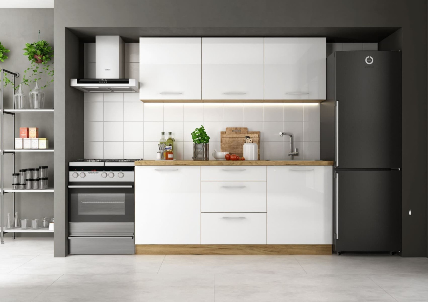 Vylepšete svůj kuchyňský zážitek s kuchyňskou linkou Naturel Billy 1.8 m a užijte si prostor, kde se funkčnost setkává s moderní elegancí.