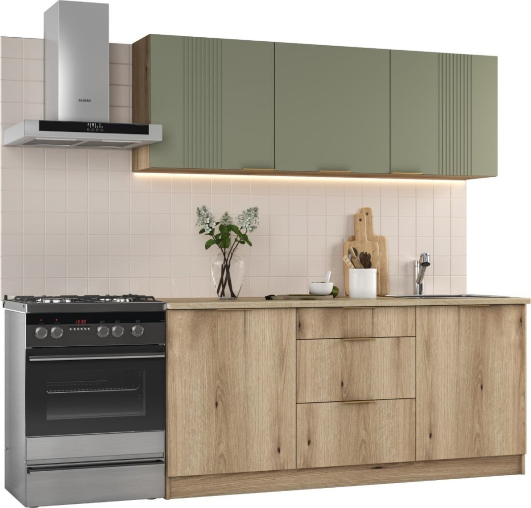 Tato kuchyňská linka je určena pro ty, kteří hledají cenově dostupné, ale kvalitní a designově atraktivní řešení pro menší kuchyňské prostory. Díky svému kompaktnímu rozměru a praktickému uspořádání je ideální volbou pro jednotlivce, páry nebo jako doplňková kuchyňská sestava.