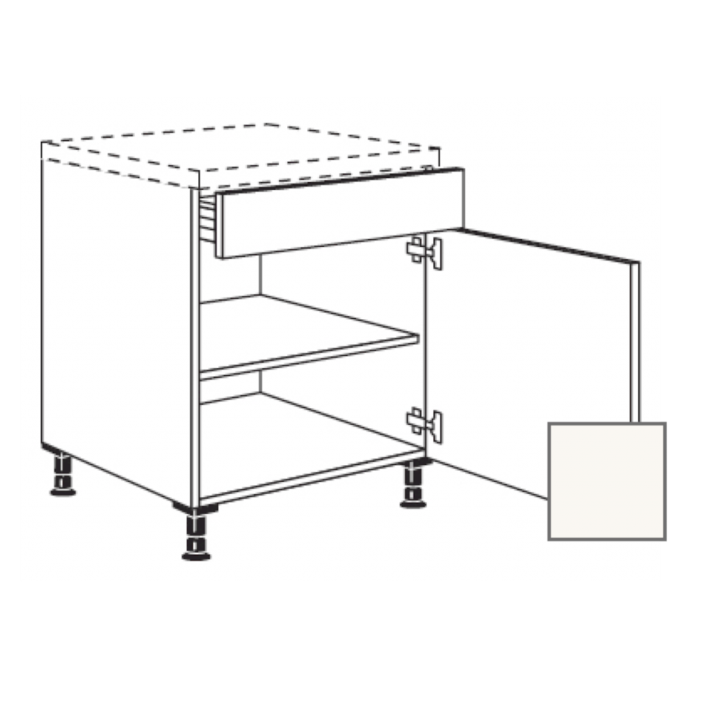 Dotaz na produkt Na splátky ještě dnesKuchyňská skříňka spodní jenodveřová pravá + zásuvka, 60 cm, s kováním Hettich, dvířka bílá lesk plná, výška skříňky 72 cm + 15 cm nožičky, korpus bílý. Skříňka je dodávaná smontovaná včetně nerezové úchytky, 1 poličky, nožiček 15 cm a veškerého kování.