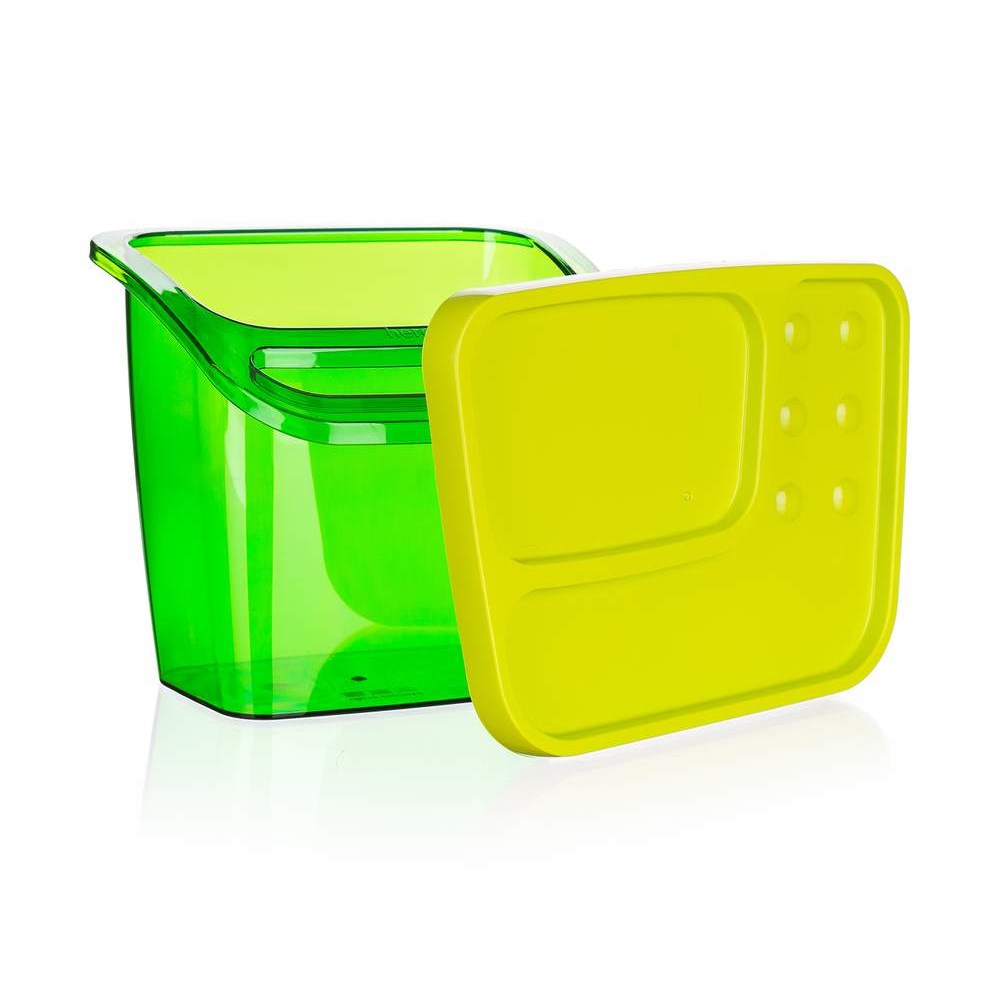 Dotaz na produktKuchyňský organizér je určen pro houby, stěrky, kartáče a přípravky na mytí. Je dodáván s praktickou vyjímatelnou odkapávací miskou. Rozměr kuchyňského organizéru je 24,5 x 17 x 18 cm (d x š x v). Organizér je dodáván v barvách - červená a zelená.