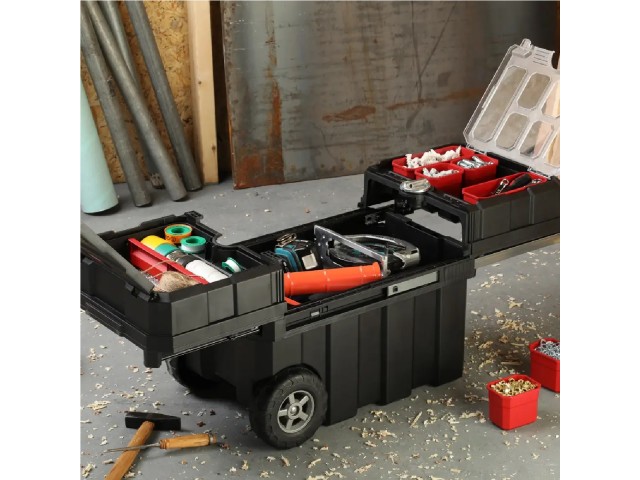 Dotaz na produkt Na splátky ještě dnesVýrobek má rozsáhlou skrýš, jejíž obsah je dokonale viditelný díky průhlednému víku. Nádoby na nářadí uvnitř skříně lze snadno vytahovat, což výrazně usnadňuje práci s v nich uloženými drobnými předměty, jako jsou šrouby, matky, hřebíky. Skříňka byla vyrobena z odolného plastu, který zaručuje její stálost a odolnost vůči mechanickému poškození.