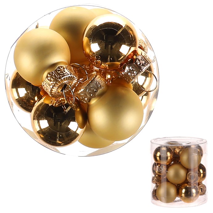 Dotaz na produktSkleněné kulaté ozdoby ve zlatých barvách a o průměru 2 cm, přináší do vašeho vánočního prostředí nádherný odstín a jedinečný lesk. V jednom balení najdete 12 kusů stejné barvy a shodné velikosti, které můžete použít k vytvoření kouzelné vánoční výzdoby. Díky kovovým očkům jsou uzpůsobené k okamžitému zavěšení, nejlépe s pomocí háčku, na vánoční stromeček nebo jiné vhodné místo.