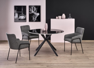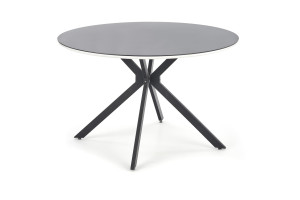 Kulatý jídelní stůl je vyroben v kombinaci skla, MDF a kovu. Deska stolu je ze skla a noha stolu jsou z ocele. Ke stolu doporučujeme dokoupit jídelní židle.