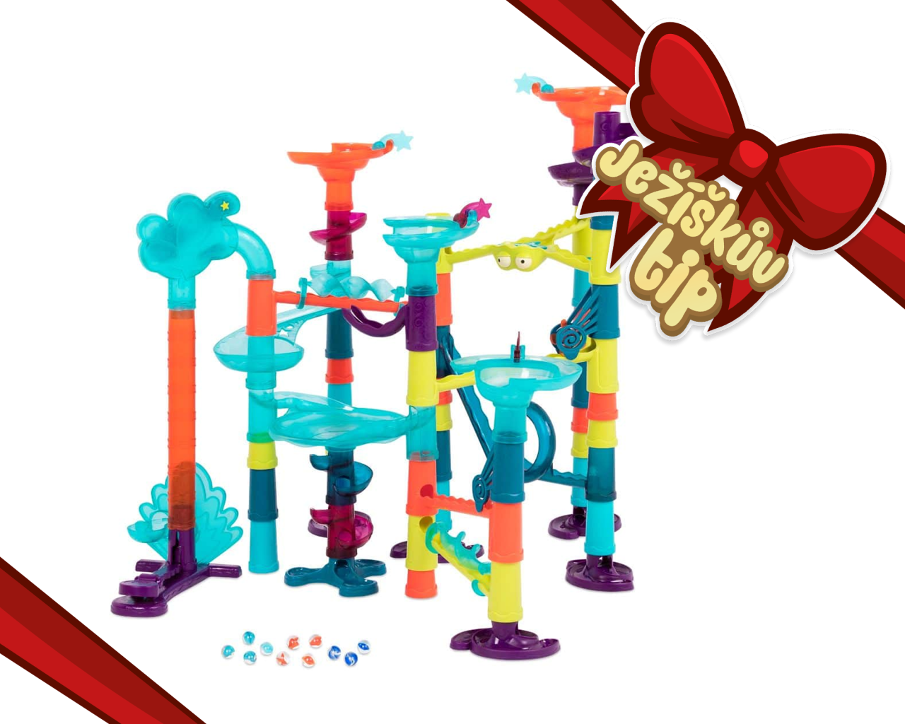Dotaz na produkt Na splátky ještě dnesMaxi kuličková dráha nabízí nekonečnou variabilitu při stavění dráhy z barevných, odolných dílů. Postavte spolu s vašimi dětmi dráhu obsahující vysoké věže, kroutící se mosty i různorodé pohyblivé části a pak si užijte sledování pohybu kuliček celým bludištěm. Pro ještě větší efekt dráha obsahuje i díl s barevnými světýlky.