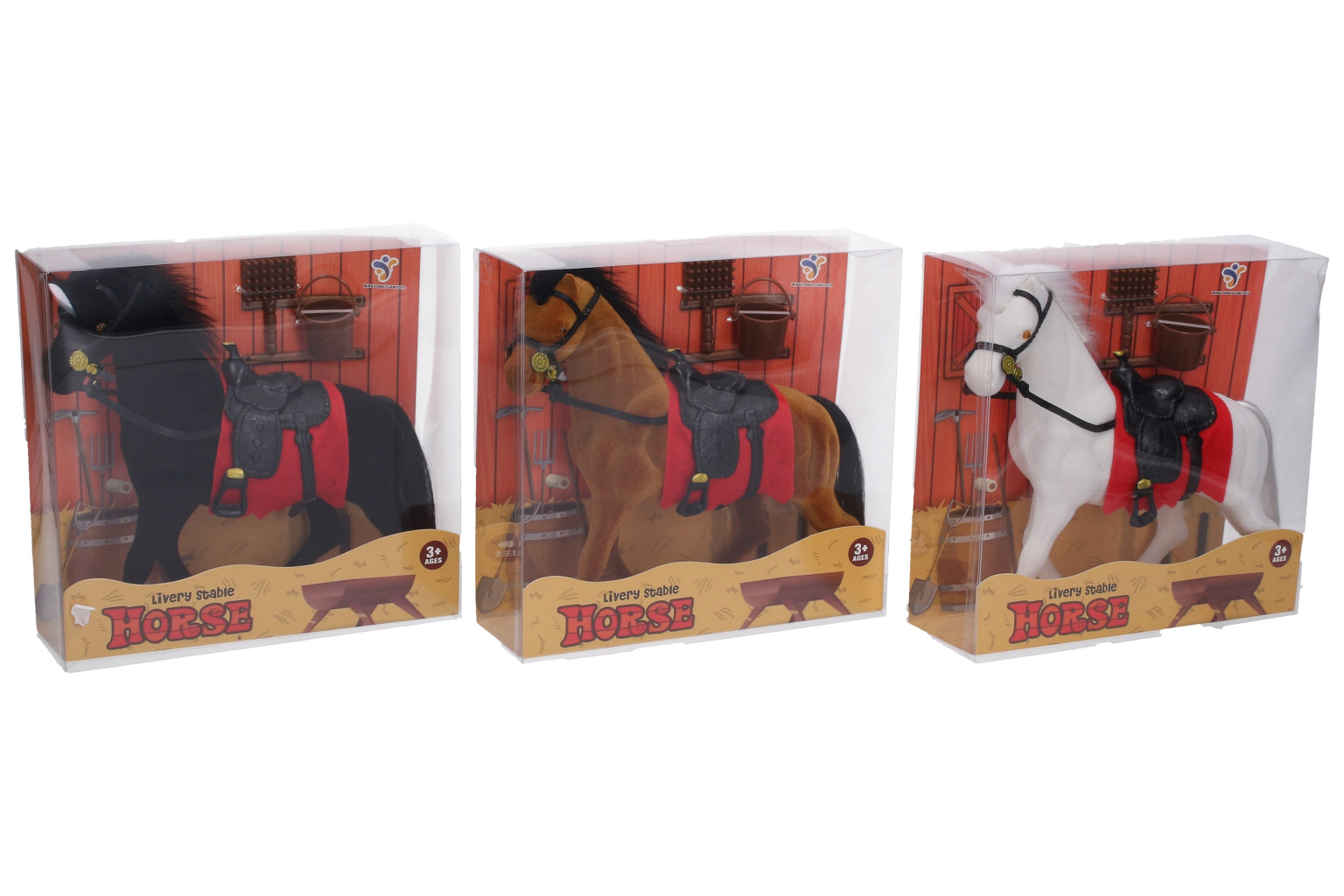 Dotaz na produktKůň figurka. Velikost 17 cm. 3 varianty - hnědá, černá, bílá. Display box - 12 ks.