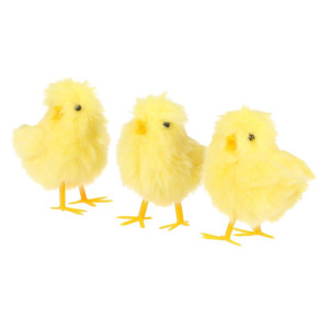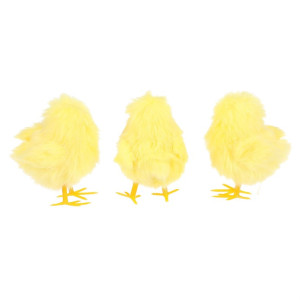 Dotaz na produktDekorativní kuře na postavení v žlutém odstínu je vyrobeno z měkké látky, která věrně napodobuje peří. V sadě jsou tři různé varianty kuřat, které se liší mírně v pozici a tvaru, což přidává na přirozenosti a vizuálním efektu. Kuřata jsou vhodná k dekoraci interiérů během jarních svátků nebo jako doplněk velikonoční výzdoby. Díky lehkému provedení lze snadno umístit na stůl, poličku nebo parapet.