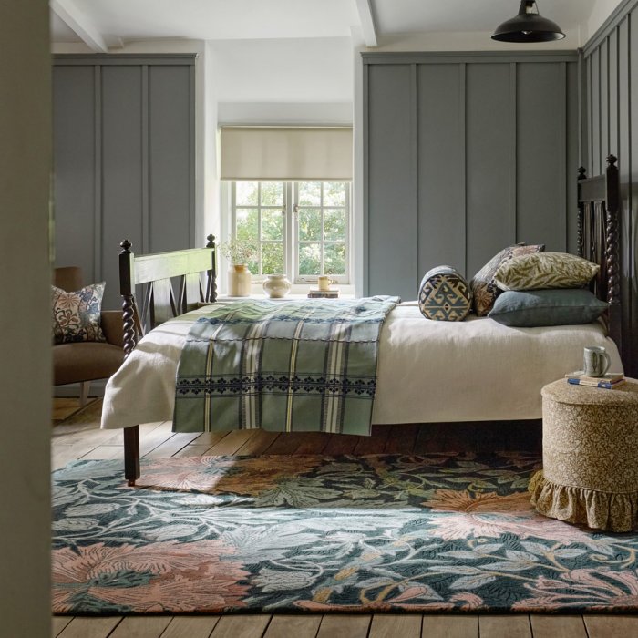 Květinový vlněný koberec Morris & Co Honeysuckle&Tulip teal 130407 Brink & Campman