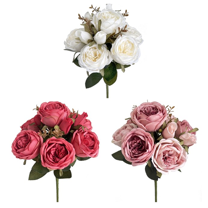 Dotaz na produkt Na splátky ještě dnesKytice z umělých růží v odstínech bílé, tmavě růžové a světle růžové, přináší do vašeho prostředí příjemné oživení s téměř nerozeznatelnými květinami od skutečných. Tyto trvanlivé květinové dekorace zůstávají stále jako čerstvé, aniž by s postupem času uvadly nebo hrozilo opadání okvětních lístků. Nechte kytici vyniknout samostatně v krásné váze, jenž bude zdobit stoly, poličky, okenní parapety a další dobře viditelná místa. S jejím realistickým vzhledem a trvanlivostí představuje skvělý doplněk pro každý interiér i venkovní prostory, bez nutnosti péče a údržby.