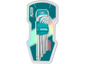 Dotaz na produkt9dílná sada šestihranných klíčů s kuličkovým hrotem, Materiál: Cr-VVelikost: 1,5 mm, 2 mm, 2,5 mm, 3 mm, 4 mm, 5 mm, 6 mm, 8 mm, 10 mm.Tepelně zpracováno a pochromováno.