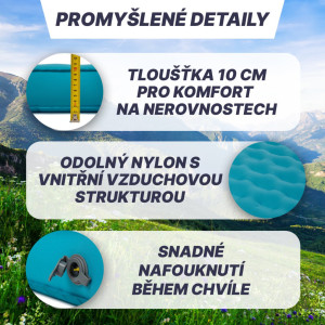 Hledáte maximální pohodlí na vašich kempovacích nebo turistických výpravách? Pak je nafukovací karimatka L140MO tou pravou volbou pro vás! Tato karimatka s tloušťkou 10 cm a rozměry 200 x 66 cm vám zajistí luxusní pocit jako doma i v náročných outdoorových podmínkách.