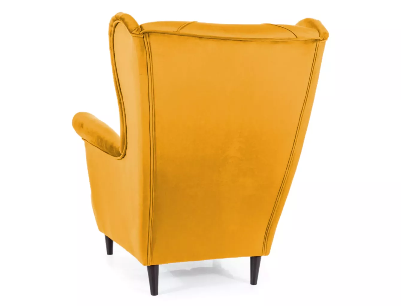 křeslo, sametová látka: kari BLUVEL 68 / bukové dřevo: barva wenge