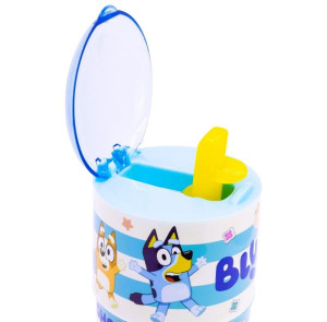Praktická opakovaně použitelná plastová láhev s oblíbeným motivem Bluye. Suzávěrem a výklopným hrdlem proti vylití. Materiál: odolný plast. Rozměr: 17,5 x 7 x 7 cm. Objem: 350 ml. Hmotnost: 122 gr. Bez BPA, zdravotně nezávadný. Výrobce: Stor. Stor, S.L.P. General Martínez Campos 5328010 Madrid, Spain info@storline.com