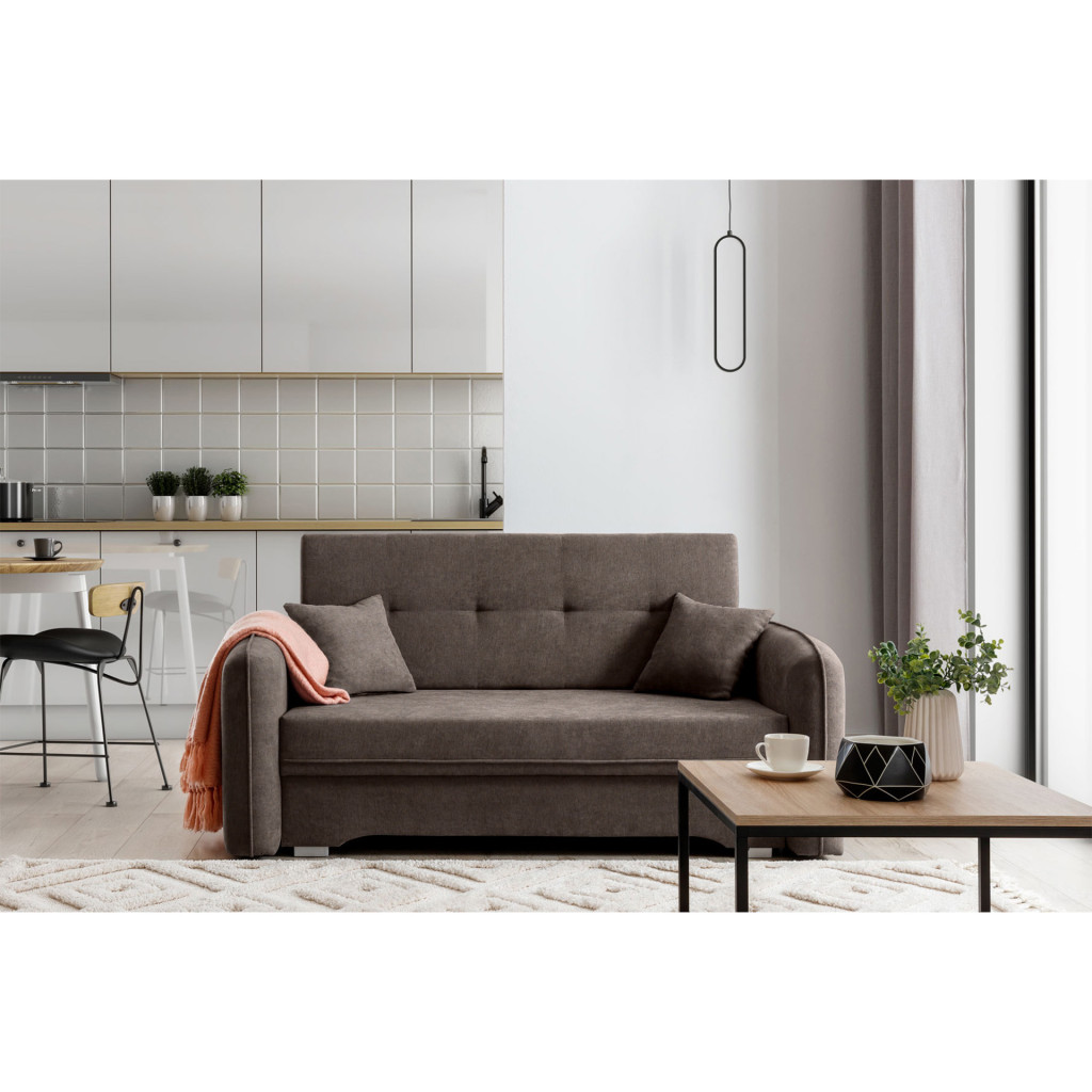 Dotaz na produkt Na splátky ještě dnesVynikající design, promyšlená kompozice a minimalistický vzhled – to je to, co představuje výsuvná postel Laine. Tento kus nábytku je mimořádně pohodlný díky výplni z pěny T25. Naše výsuvná postel je navíc vybavena přihrádkou na ložní prádlo, takže je skvělým místem pro uložení dalších polštářů nebo dek. Nohy postele Laine jsou vyrobeny z plastu a jsou vysoké pouze 3 centimetry. Rozměry výsuvné postele jsou: 155x105x75 cm a vnese elegantní styl a funkčnost do každého obývacího pokoje, ložnice nebo domácí kanceláře. Laine lze velmi rychle proměnit v postel o rozměrech 196x125 cm. Je to jistě ideální volba pro večerní promítání filmů. Zajímavé dekorace v podobě prošívání na zadní straně doplňují vizuální stránku výsuvné postele Laine. Součástí tohoto kusu nábytku jsou navíc dva dekorativní polštáře ve stejné barvě jako samotná postel. Laine je ideální volbou pro fanoušky minimalistických a přírodních řešení v interiérovém designu.Látky: Poco 22