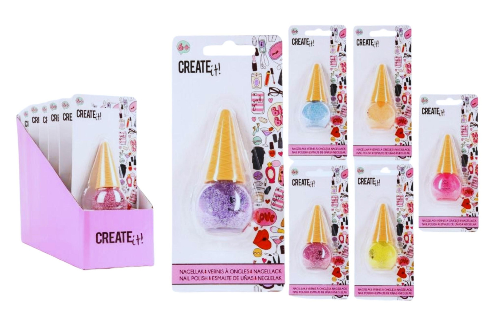 Lak na nehty Create it ve tvaru zmrzliny. Obsahuje: 13 ml. Věkově: 3+. Mix barev, výběr jednotlivého kusu nelze ovlivnit. Výrobce: Create it.