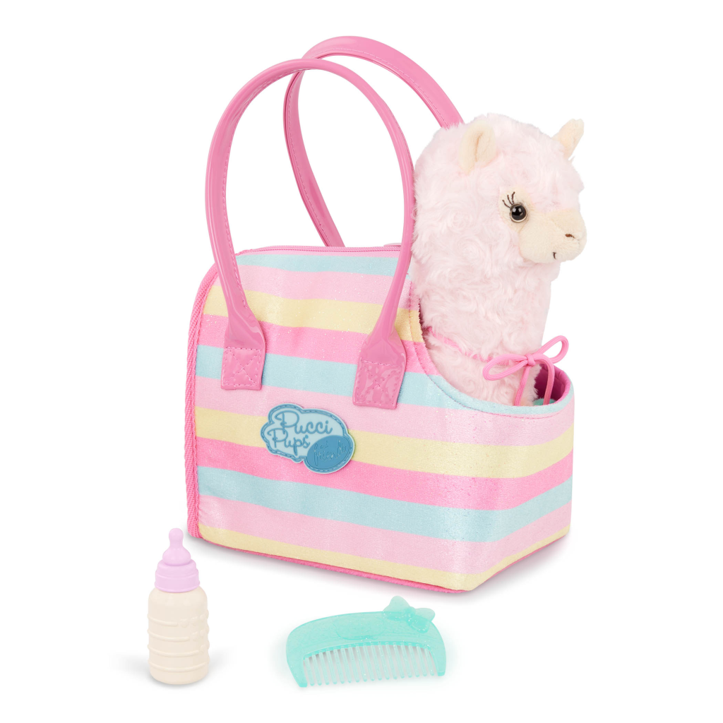 Obsah balení: kabelka, plyšová lama, hřeben, lahvička