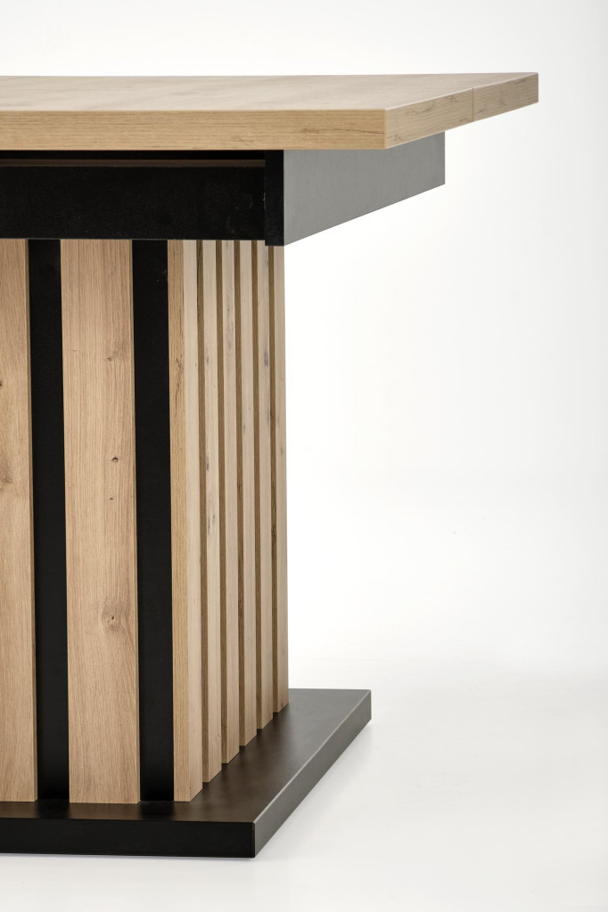 Dotaz na produkt Na splátky ještě dnesrozměry: 160-210/90/76 cm rozkládací stůl, materiál: lamino nábytková deska, barva: deska - dub artiasan, nohy - dub artisan / černá
