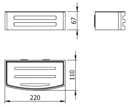 šířka 220 mmhloubka 110 mmvýška 67 mmbarva matná černávyjímatelná vložkainstalace nástěnná, vhodná do prchymontáž vrtánímmontážní materiál je součástí baleníPARAMETRY:Barva: černáDruh: police s...