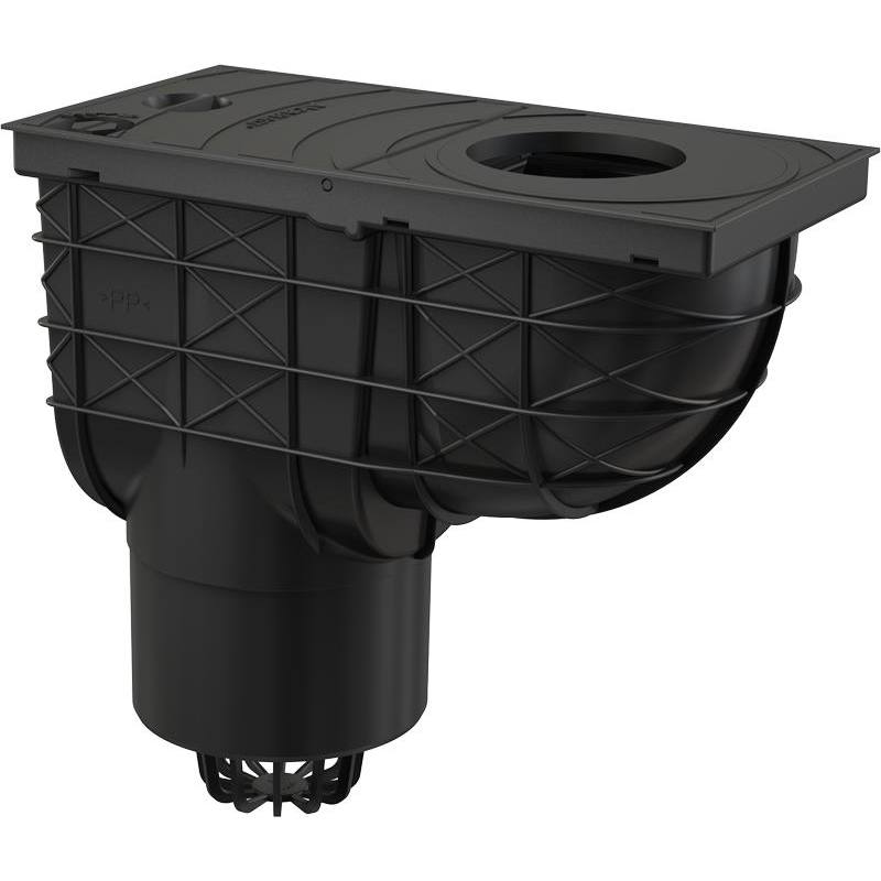 • obsahuje těsnící kroužky pro připojení dešťových svodů různých průměrů (80, 90, 110, 125 mm), víko okapového svodu (lze nahradit mřížkou