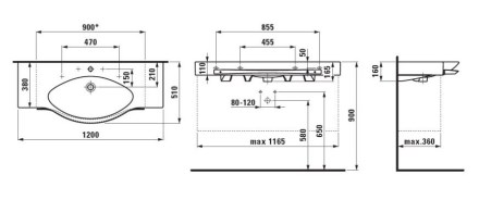 LAUFEN PALACE umyvadlo 120 cm, s otvorem pro baterii a přepadem