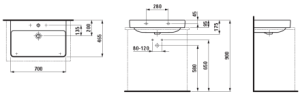 šířka 70 cmhloubka 46,5 cmvýška 17,5 cmmateriál sanitární keramikabarva bílábez povrchové úpravy1 otvor pro baterii uprostředs přepademvhodné pro instalaci na deskubroušená spodní částupevnění ke...