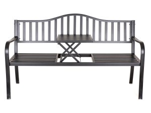 Zahradní lavička REA je vyrobená z oceli v černé barvě se zabudovaným výsuvným stolkem.