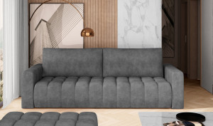 Dotaz na produkt Na splátky ještě dnesLazaro je pohodlná, prostorná a stylová pohovka o rozměrech 245 x 97 x 85 cm, která jistě zaujme svým stylovým prošíváním na sedáku a prošíváním po stranách. Mezi její vlastnosti patří: originální sedák vyplněný kombinací pěny T25 a HR pěny, tvarované opěradlo, široké područky a široká škála barevných možností nábytku, protože je k dispozici v celé škále barev z kolekce Eltap. Pohovku lze velmi snadno a rychle přeměnit na prostornou spací plochu o rozměrech 195 x 125 cm. Je doplněna ložním prádlem s automatickým rozkládacím systémem DL. Díky pohodlné, funkční a stylové pohovce Lazaro bude váš obývací pokoj vypadat opravdu velkolepě.Látky: Dora 95