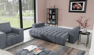 Dotaz na produkt Na splátky ještě dnesLazaro je pohodlná, prostorná a stylová pohovka o rozměrech 245 x 97 x 85 cm, která jistě zaujme svým stylovým prošíváním na sedáku a prošíváním po stranách. Mezi její vlastnosti patří: originální sedák vyplněný kombinací pěny T25 a HR pěny, tvarované opěradlo, široké područky a široká škála barevných možností nábytku, protože je k dispozici v celé škále barev z kolekce Eltap. Pohovku lze velmi snadno a rychle přeměnit na prostornou spací plochu o rozměrech 195 x 125 cm. Je doplněna ložním prádlem s automatickým rozkládacím systémem DL. Díky pohodlné, funkční a stylové pohovce Lazaro bude váš obývací pokoj vypadat opravdu velkolepě.Látky: Primo 89