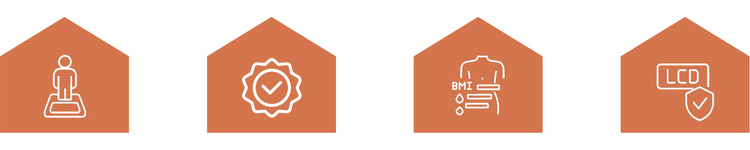 - pokročilá analýza složení těla – měření BMI, procento tělesného tuku, procento vody, svalová hmota, kostní hmota, viscerální tuk, podkožní tuk, bílkoviny, metabolický věk