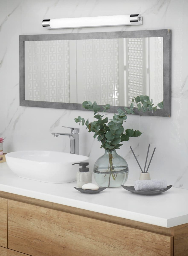 PARAMETRY:Světelný zdroj: LED Balení: 1 ksPočet v balení: 1 Druh výrobku: nástěnná lampa Materiál: kov Barva popisná: chrom Barva základní: chrom Místnost: koupelna kuchyně Šířka: 44  cmVýška: 6 ...