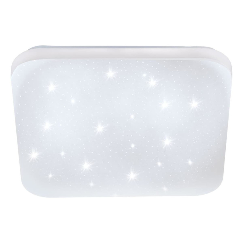 Dotaz na produktStropní svítidlo LED FRANIA-S má čtvercový bílý plastový světelný panel se zaoblenými rohy a zadní panel z bílého kovu. Když je světlo zapnuté, prosvítá skrz kryt a vytváří třpytivý efekt jako hvězdy na noční obloze. Integrované diody LED vydávají příjemné teplé bílé světlo. Stropní svítidlo o rozměrech 33 x 33 cm poskytuje atraktivní osvětlení a zároveň se dokonale začlení do obytných prostor v moderním stylu, včetně kuchyní, obývacích pokojů, ložnic, chodeb a dětských pokojů.