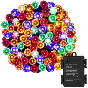 LED světelný řetěz s 8 světelnými funkcemi a napájením na baterie. Úsporné mikro diody, časovač, vnitřní i venkovní použití. Voděodolné provedení, krytí IP44. Délka světelné části 5 m, napájecí kabel 30 cm. Barva multicolor + teplá bílá, 50 led, napájení 3x AA baterie.