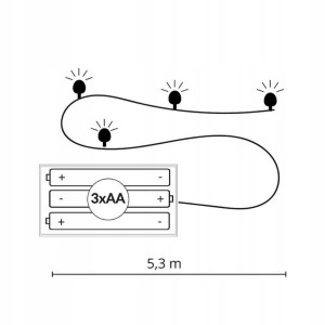 Řetěz je vybaven velmi úspornými led diodami. Baterie spolehlivě vydrží desítky hodin nepřetržitého svícení.