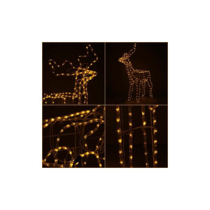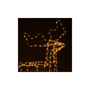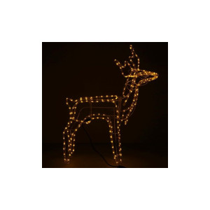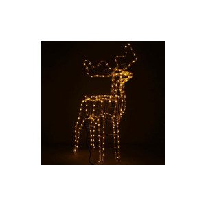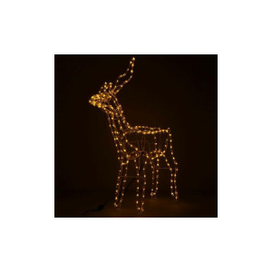 Vysoký sob s mohutným parožím a vztyčenou hlavou. Úžasná 3D světelná dekorace vhodná pro vnitřní i venkovní použití, voděodolné provedení, krytí IP44. Úsporné diody, barva teplná bílá. Výška 90 cm, 216 LED, napájecí kabel 2 m.