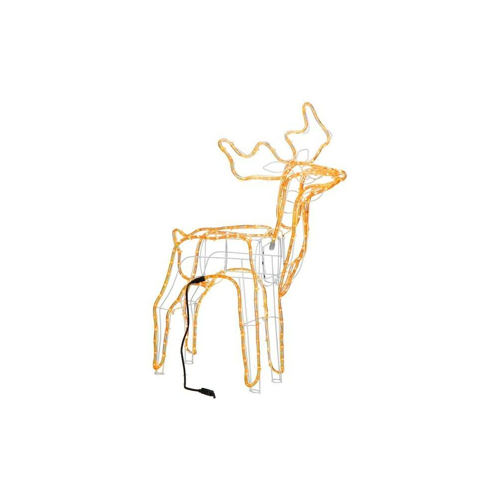 Vysoký sob s mohutným parožím a vztyčenou hlavou. Úžasná 3D světelná dekorace vhodná pro vnitřní i venkovní použití, voděodolné provedení, krytí IP44. Úsporné diody, barva teplná bílá. Výška 90 cm, 216 LED, napájecí kabel 2 m.