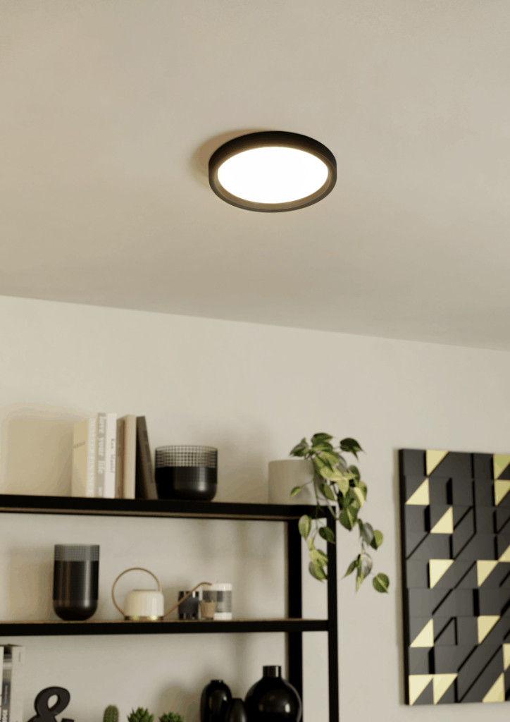 PARAMETRY:Světelný zdroj: LED Hmotnost balení: 0,502  kgDruh výrobku: stropní osvětlení Materiál: plast Barva základní: černá Objem: 3,528 lPrůměr: 285  cmVýška: 31  cmKrytí: IP20 Energetická třída:...