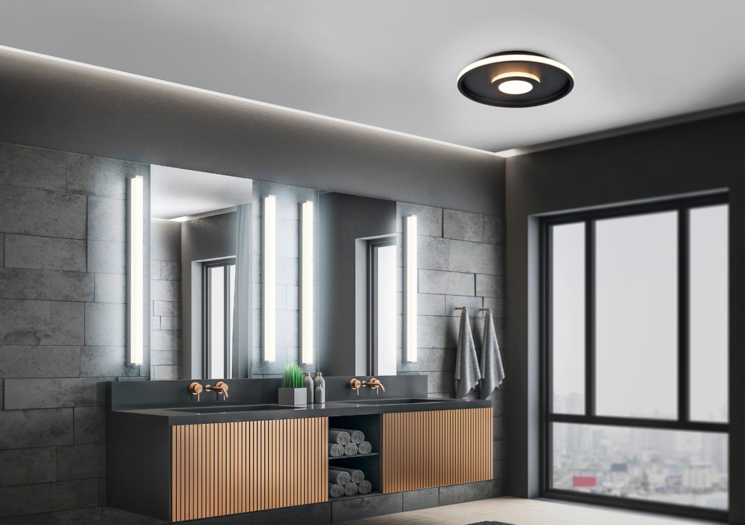 PARAMETRY:Balení: 1 ksPočet v balení: 1 Druh výrobku: stropní osvětlení Materiál: kov Barva popisná: černá Barva základní: černá Povrch: mat Místnost: koupelna kuchyně Šířka: 40  cmVýška: 6,8 ...
