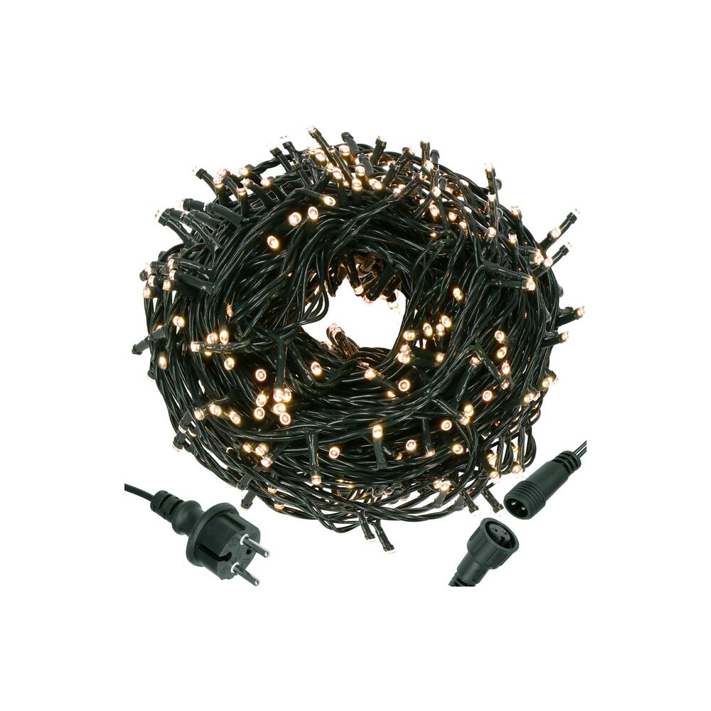 Dotaz na produktLED světelný řetěz vhodný pro vnitřní i venkovní použití. Úsporné led diody, voděodolné provedení, krytí IP44. Délka světelné části 24 m, napájecí kabel 1,5m. Barva teplá bílá, 300 led.