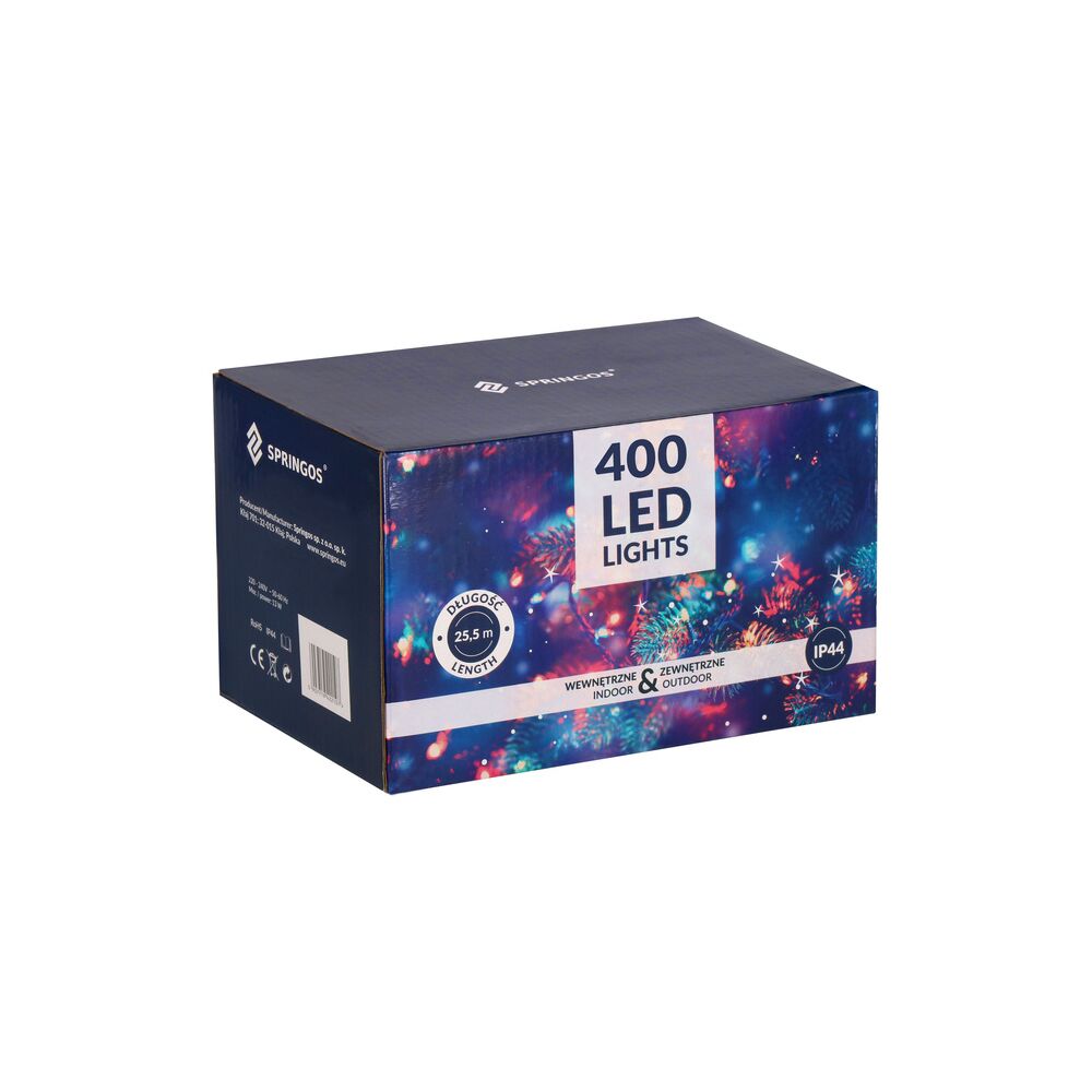 LED světelný řetěz vhodný pro vnitřní i venkovní použití. Úsporné led diody, voděodolné provedení, krytí IP44. Délka světelné části 32 m, napájecí kabel 1,5m. Barva studená bílá, 400 led.