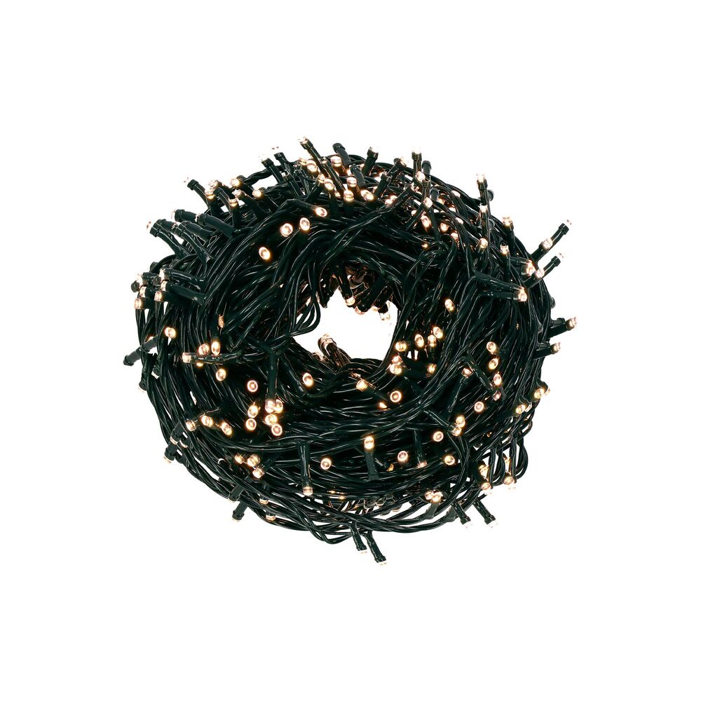 LED světelný řetěz vhodný pro vnitřní i venkovní použití. Úsporné led diody, voděodolné provedení, krytí IP44. Délka světelné části 33 m, napájecí kabel 1,5m. Barva teplá bílá, 400 led.