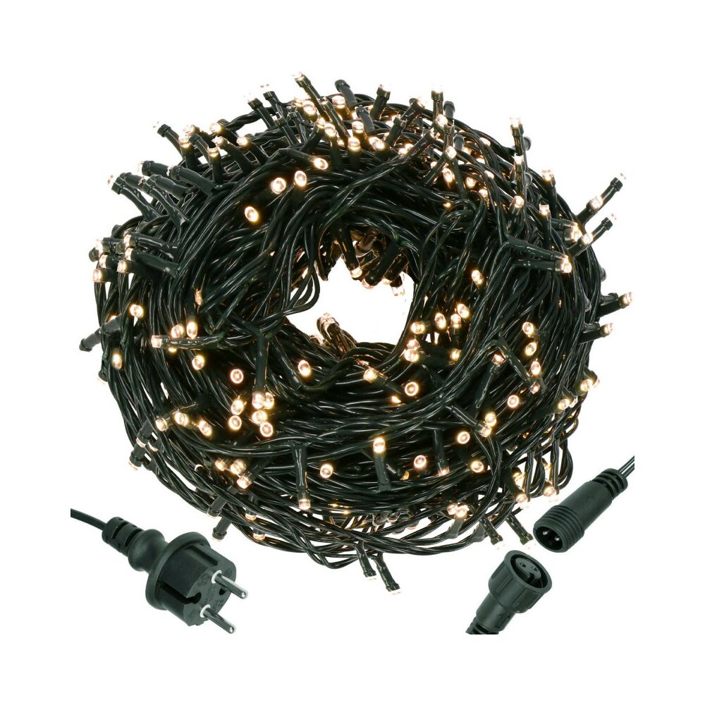 LED světelný řetěz vhodný pro vnitřní i venkovní použití. Úsporné led diody, voděodolné provedení, krytí IP44. Délka světelné části 40 m, napájecí kabel 1,5 m. Barva teplá bílá, 500 led.