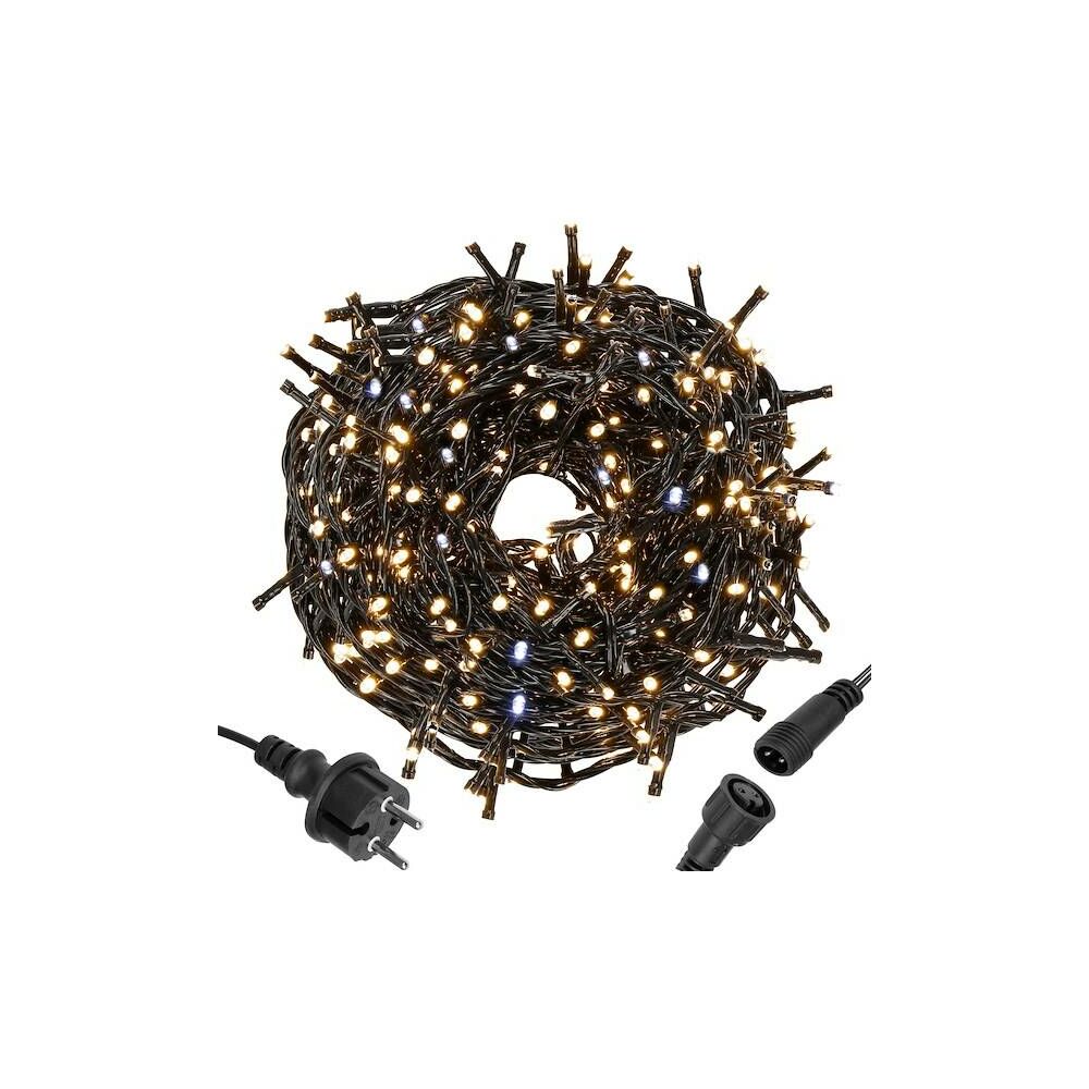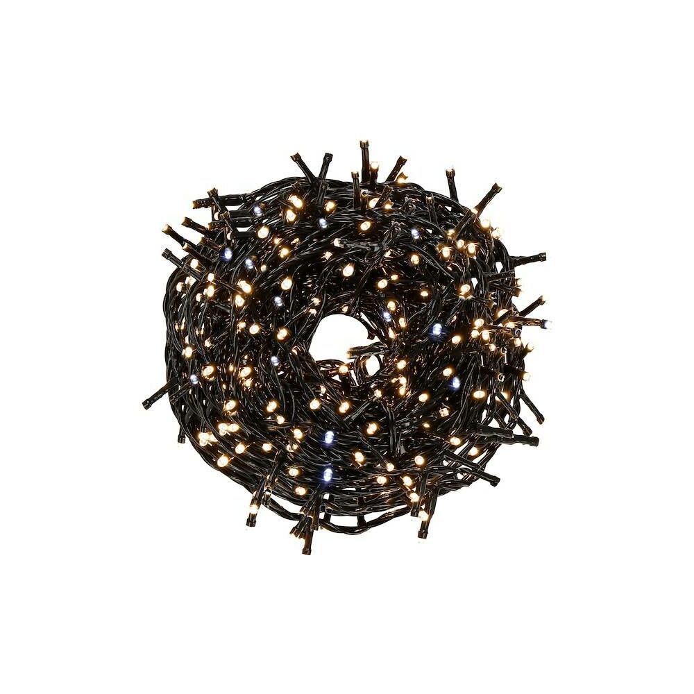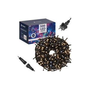 LED světelný řetěz se záblesky vhodný pro vnitřní i venkovní použití. Úsporné led diody, voděodolné provedení, krytí IP44. Délka světelné části 30 m, napájecí kabel 1,5 m. Barva teplá bílá + záblesky studená bílá, 500 led.