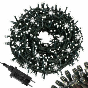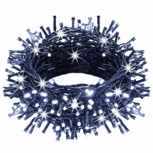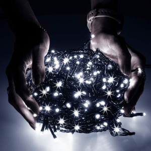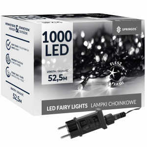 LED světelný řetěz se záblesky a adaptérem na bezpečné napětí. Ultra úsporné led diody, vnitřní i venkovní použití, voděodolné provedení, krytí IP44. Délka světelné části 50 m, napájecí kabel 2,5 m. Barva studená bílá + záblesky studená bílá, 1000 led.