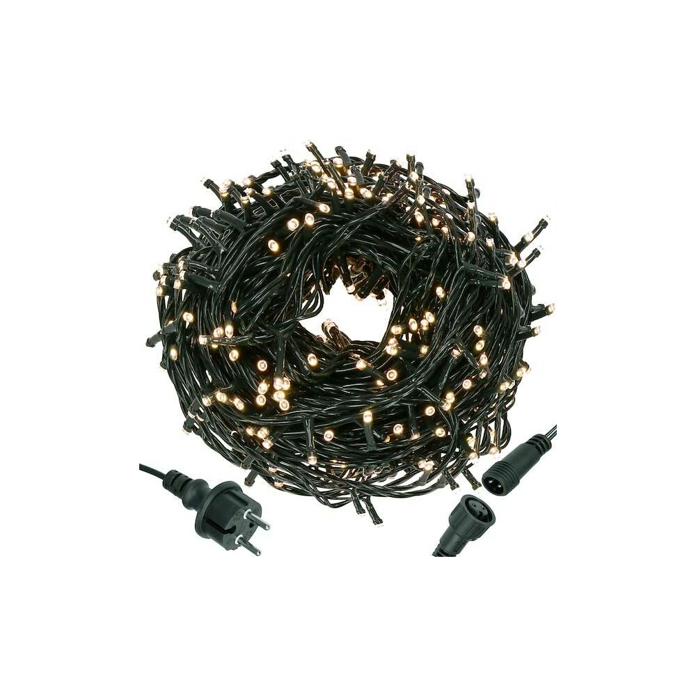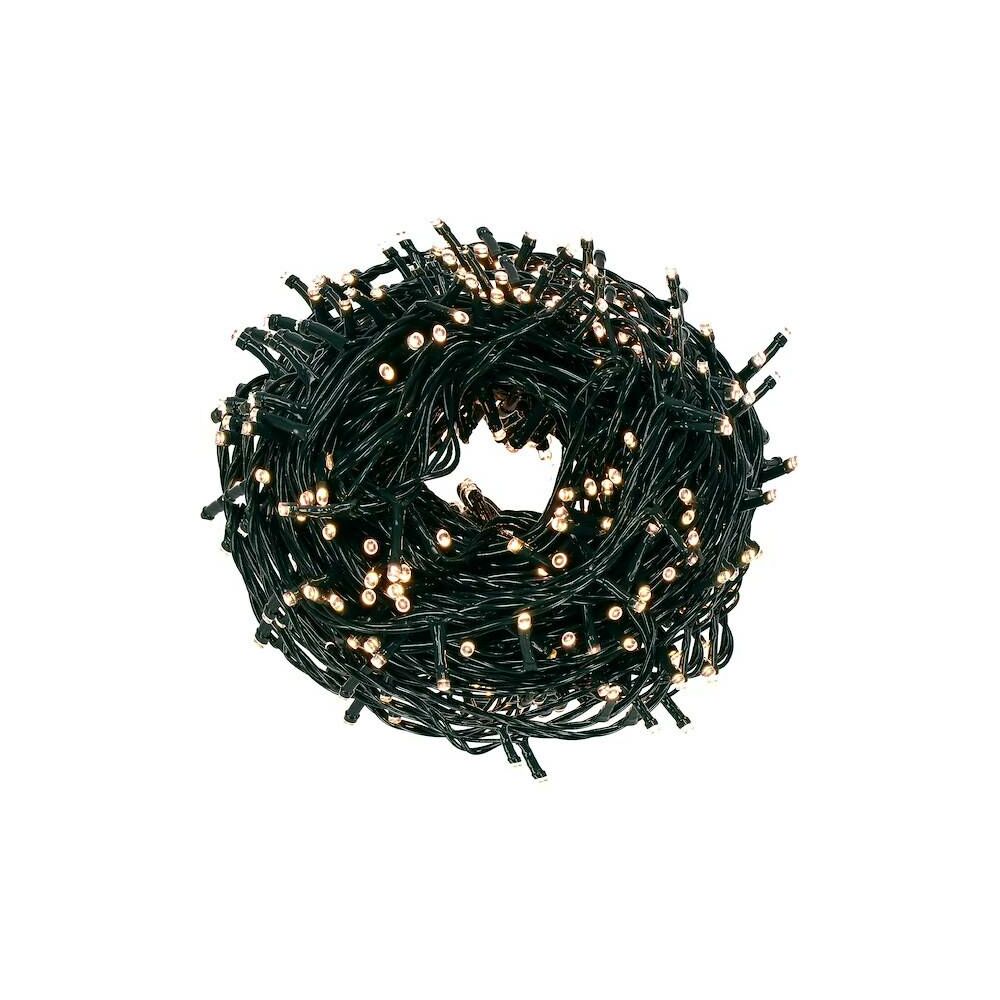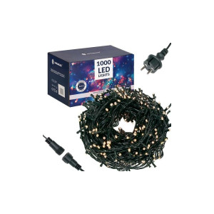 LED světelný řetěz vhodný pro vnitřní i venkovní použití. Úsporné led diody, voděodolné provedení, krytí IP44. Délka světelné části 60 m, napájecí kabel 1,5m. Barva teplá bílá, 1000 led.