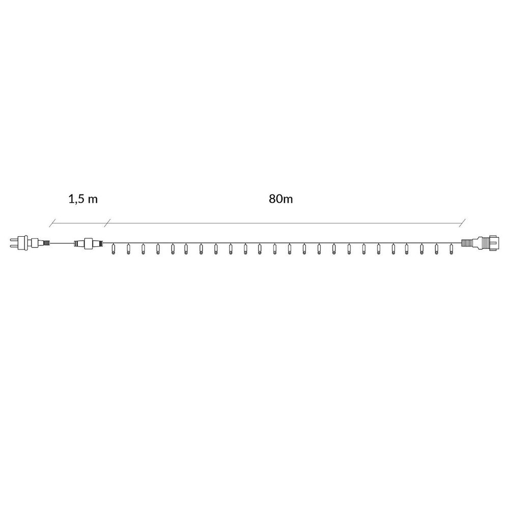 LED světelný řetěz se záblesky vhodný pro vnitřní i venkovní použití. Úsporné led diody, voděodolné provedení, krytí IP44. Délka světelné části 80 m, napájecí kabel 1,5 m. Barva multicolor + záblesky studená bílá, 1000 led.