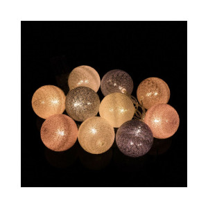 Elegantní světelný řetěz s bavlněnými koulemi a napájením na baterie. Jemně prosvítí interiér a vytvoří příjemnou sváteční atmosféru. Úsporné diody, vnitřní použití. Délka světelné části 1,8 m, napájecí kabel 30 cm. Barva světla teplá bílá, 10 led, napájení 2x AA baterie.