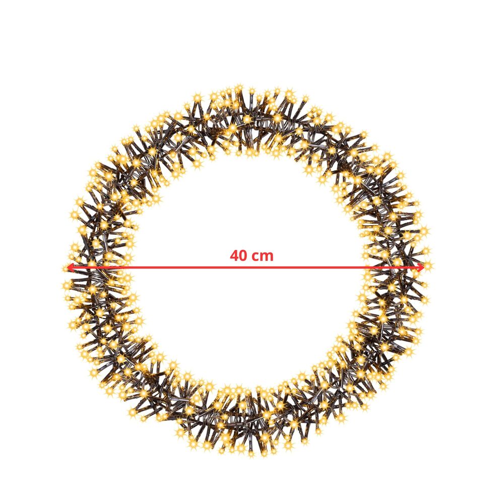 LED světelný věnec 40cm 300LED 8-funkcí IP44 teplá bílá je stylová dekorace, která vytvoří příjemnou a slavnostní atmosféru. Díky 300 LED diodám s teplým bílým světlem poskytuje intenzivní a rovnoměrné osvětlení. Je ideální pro výzdobu dveří, oken, stěn nebo terasy, kde vytvoří elegantní vánoční efekt.