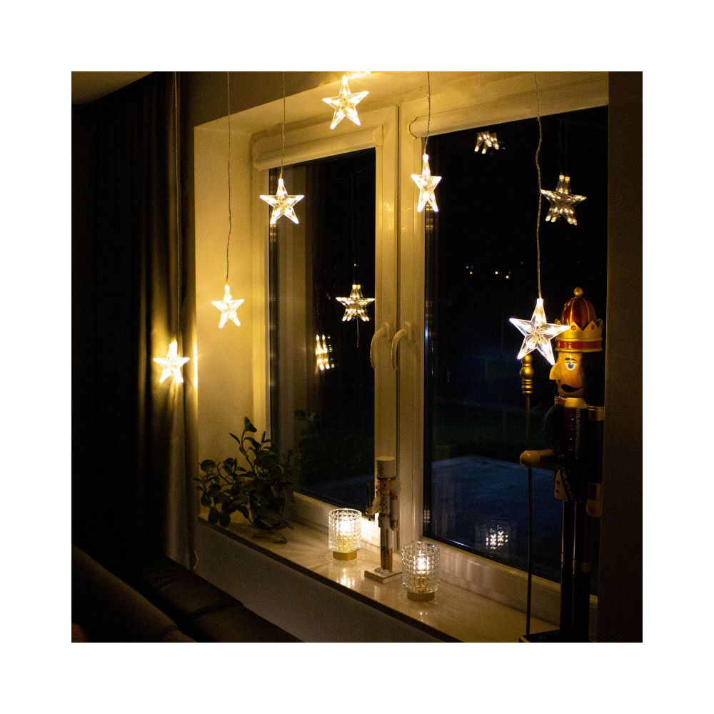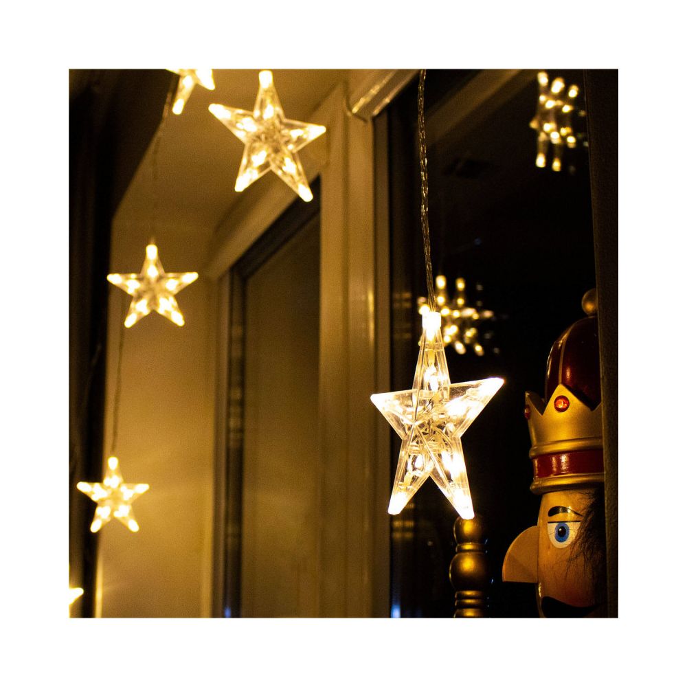 LED světelná záclona s nádherným uspořádáním hvězd do pyramidy. Adaptér na bezpečné napětí, ultra úsporné led diody, transparentní kabel. Vnitřní i venkovní použití, voděodolné provedení, krytí IP44. Rozměry světelné části 2x0,8 m, napájecí kabel 3 m. Barva teplá bílá, 70 led.